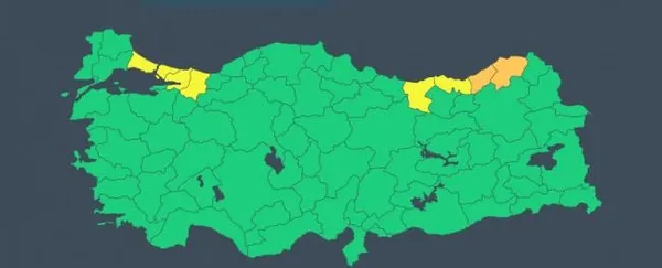 KUVVETLİ YAĞIŞ UYARISI: Osmaniye, Hatay kıyıları, Ordu, Giresun, Trabzon, Rize, Artvin ve Ardahan çevrelerinin yerel olarak kuvvetli (21-50 kg/m2), Rize ile Artvin'in kuzey kesimlerinde şiddetli ve yer yer aşırı (100 mm üzeri) olmak üzere sağanak ve gök gürültülü sağanak yağış beklendiğinden sel, su baskını, yıldırım, ulaşımda aksamalar, yağış anında kuvvetli rüzgar, iç kesimlerde yerel dolu yağışı gibi olumsuzluklara karşı dikkatli ve tedbirli olunmalıdır