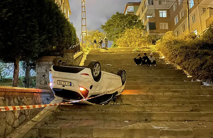 Karaoğlan sokaktaki merdivenleri fark edemeyince araç birkaç takla attıktan sonra parkın duvarına çarparak durdu.