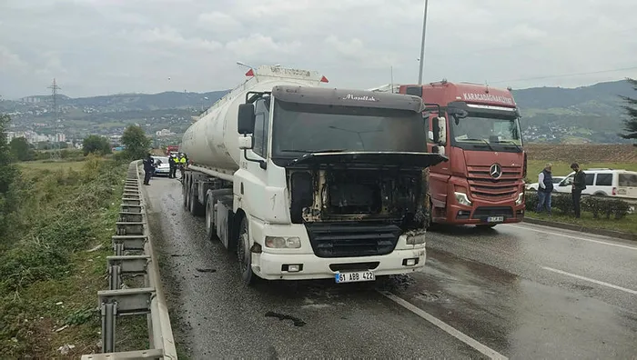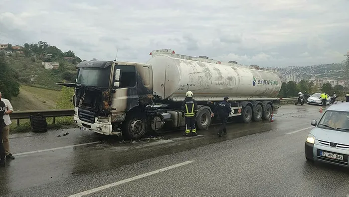 Samsun-Ordu karayolu üzerinde mazot yüklü tankerin motor bölümünde çıkan yangın, itfaiye ekiplerinin müdahalesiyle söndürüldü. 26 ton mazot yüklü olduğu öğrenilen tankerin patlama riskine karşı geniş güvenlik önlemi alındı.