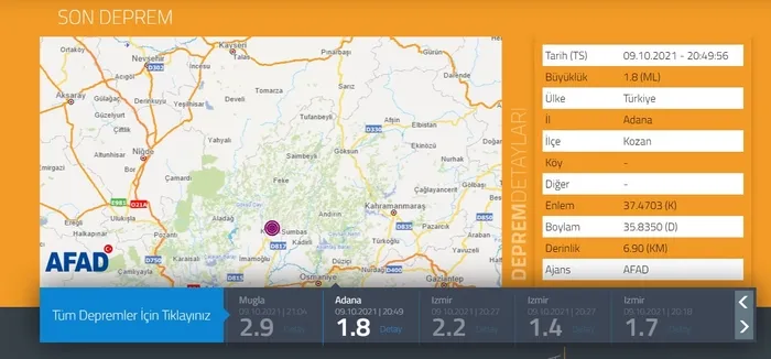 AFAD son dakika duyurdu! Adana Kozan'da deprem (2021 TÜRKİYE SON DEPREMLER..."
