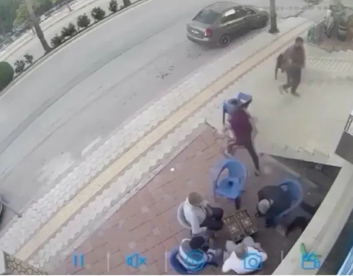 Bu sırada sesleri duymasına rağmen yerinden kalkmayan, oyun oynamaya devam eden kişiler, satırlı saldırgan karşısında oturmaya devam etti.