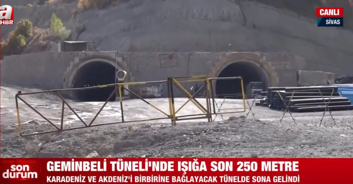 A Haber muhabiri Murat Onur, Geminbeli Tüneli'ndeki çalışmaları yerinde görüntüledi. Karadeniz ile Akdeniz arasında bağlatı olacak Geminbeli Tüneli için sona gelindi. A Haber muhabiri Murat Onur, Geminbeli Tüneli'nde ışığa son 250 metre kaldığını dile getirdi.