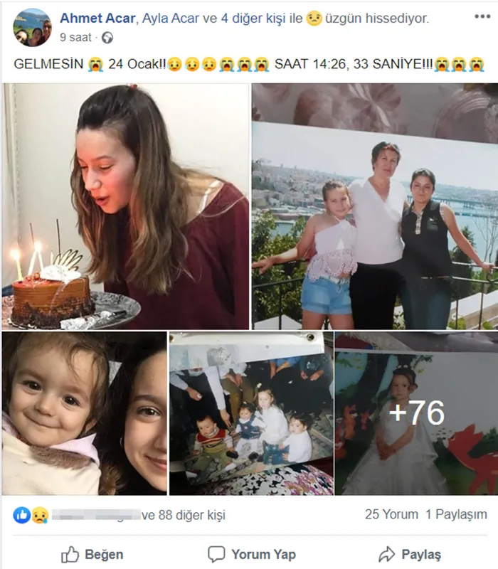 Kepçelerle yürütülen çalışmaların altına "Bugün kızımız Kader Buse Acar'ı aradık. Yine bulamadık. Yine boynumuz bükük geri döndük" yazdı. Acar ailesine sosyal medyadan destek yağdı.