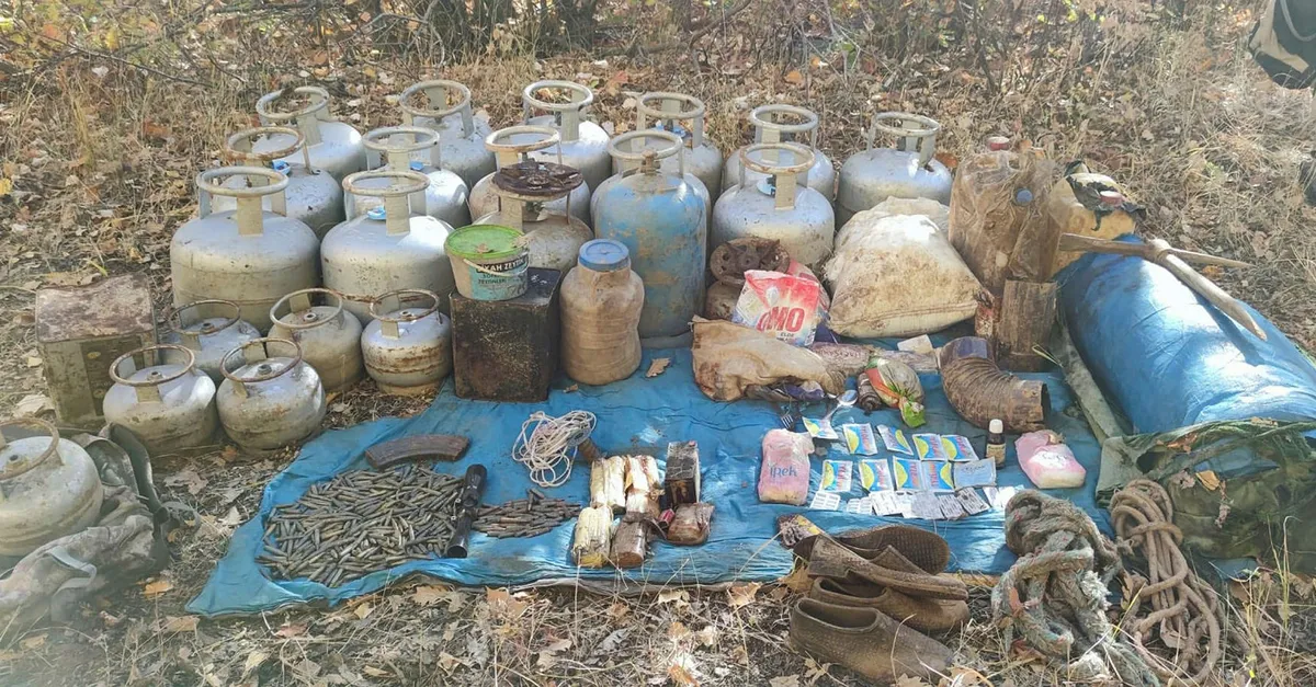 Güvenlik güçleri mühimmata el koyarken, sığınak kullanılamaz hale getirdi.