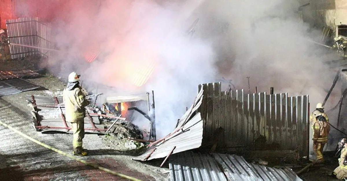 Son dakika haberine göre: Kağıthane'de inşaat işçilerinin kaldığı konteynerler, çıkan yangında küle döndü. 4 işçinin son anda kurtulduğu yangında, bir işçi hafif şekilde yaralandı.