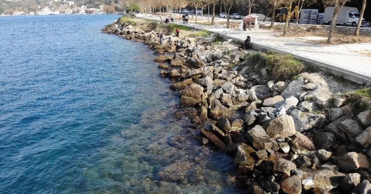Beykoz Anadolu Kavağı Sahil şeridinde 'gelgit' sebebiyle deniz suyu kıyıdan hemen hemen 80 santimetre geri çekildi.