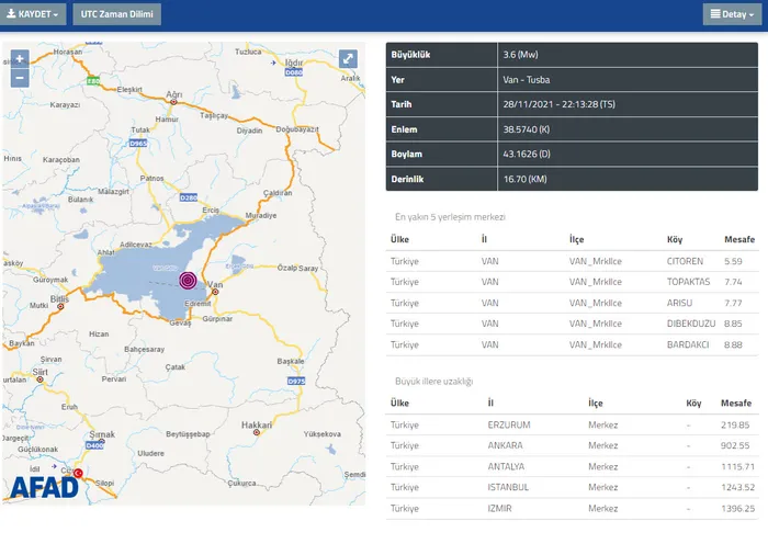 — AFAD Deprem (@DepremDairesi) November 28, 2021