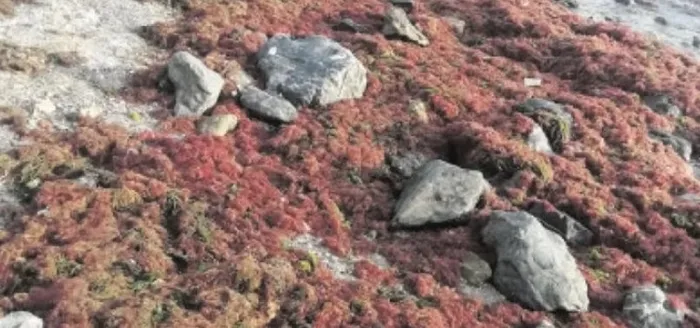 Lodosun ardından Marmara Denizi’nin kırmızı algleri kıyıya vurdu