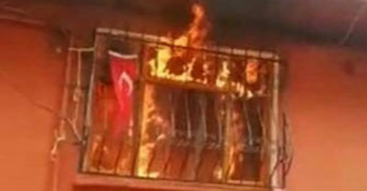 Ev alev alev yanarken camda asılı olan Türk bayrağı ise alevler etkilemedi. Çevredekilerin ihbarı üzerine bölgeye itfaiye ve polis ekipleri sevk edildi.