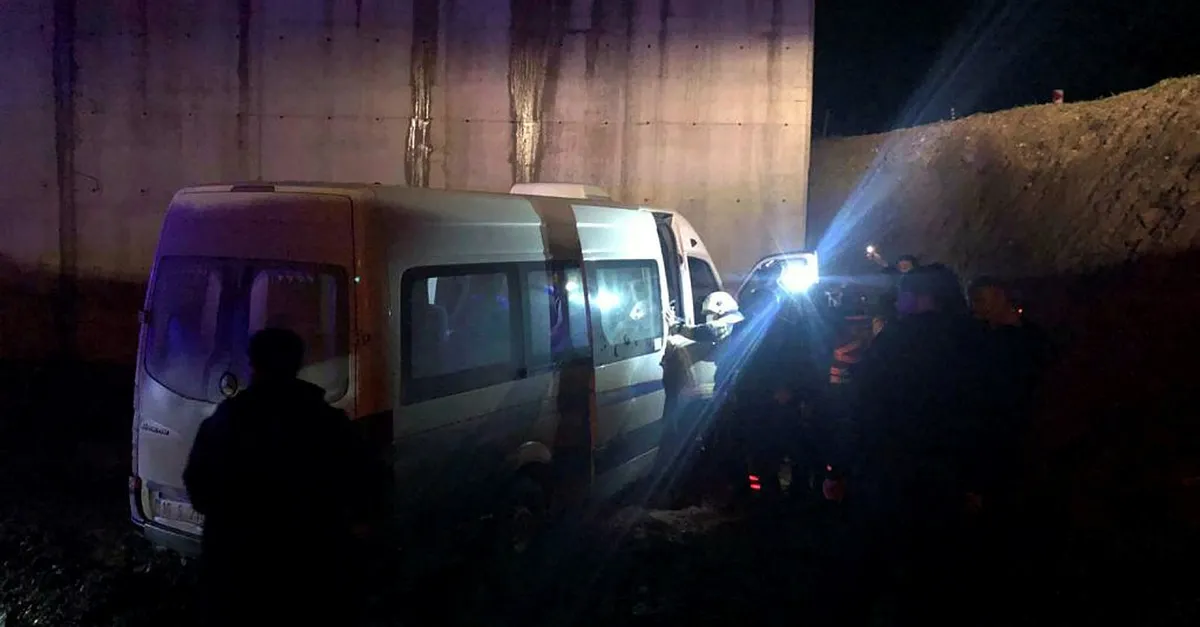 Kayan minibüs, metrelerce savrularak yapımı devam eden üst geçit inşaatına düştü. Toprak yola giren araç, üst geçidin beton ayağına çarptı. Kazada sürücü Hasan Bilgin ile araçtaki 4 işçi yaralandı. Kazayı gören diğer sürücüler yaralıların yardımına koşarken durumu sağlık ekiplerine bildirdi. İhbar üzerine kaza yerine sağlık, polis ve itfaiye ekipleri sevk edildi.