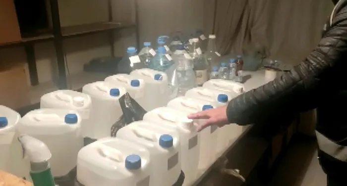 Yapılan aramada 70 litre etil alkol, 14 litre sahte votka, 16,5 litre sahte rakı, 8 litre sahte viski ele geçirildi.