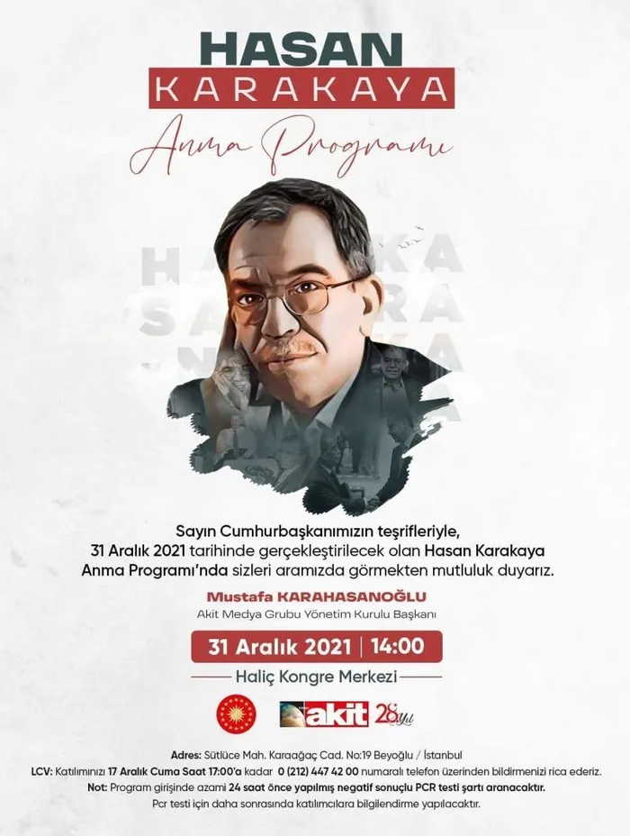 Yaklaşık 50 yıl sürdürdüğü gazetecilik kariyerinde çok kritik yazılara imzasını atan usta kalem Hasan Karakaya için Haliç Kongre Merkezi'nde anma programı düzenlenecek.