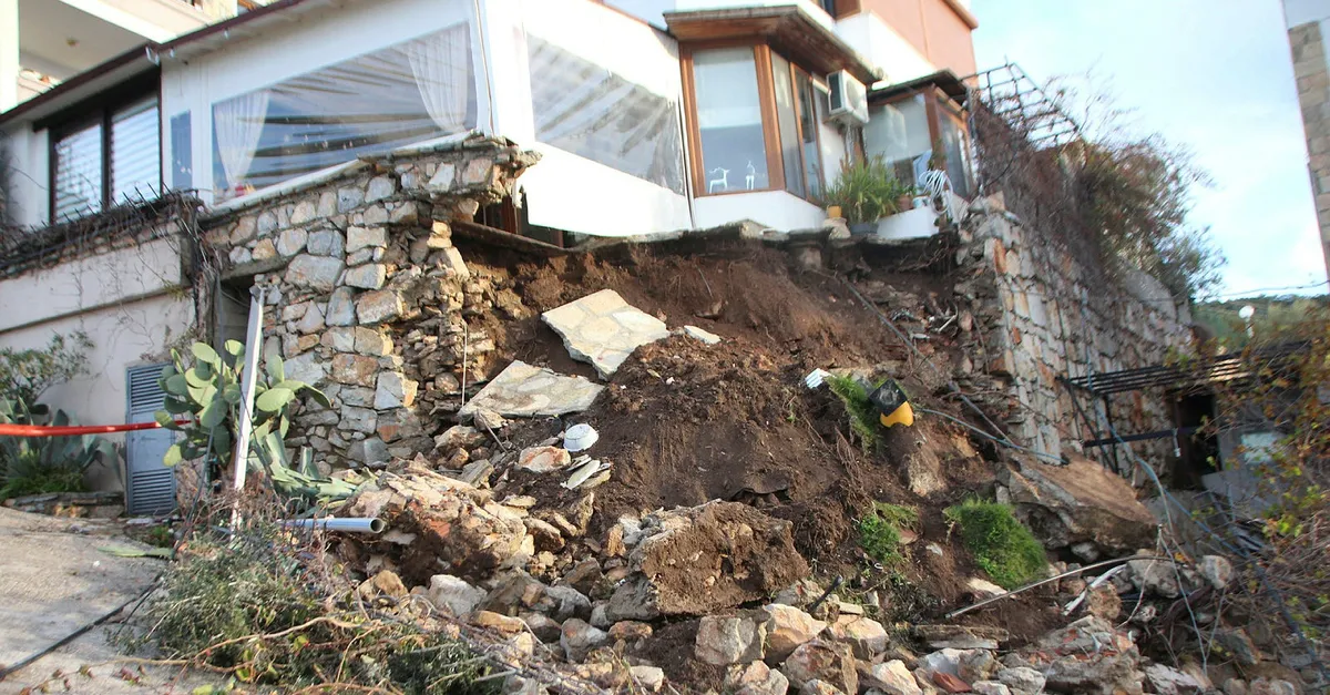 Bodrum'da aşırı yağış: Bir evin istinat duvarı yıkıldı
