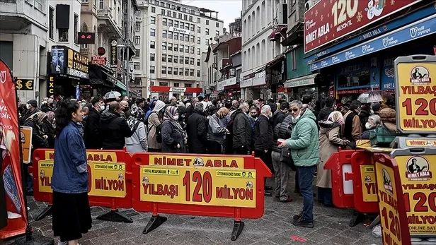 Milli Piyango İdaresinin Yılbaşı Özel Çekilişi için belirlediği 120 milyon liralık büyük ikramiyeyi kazanmak isteyen vatandaşlar da Nimet Abla gişesi önünde uzun kuyruklar oluşturdu.