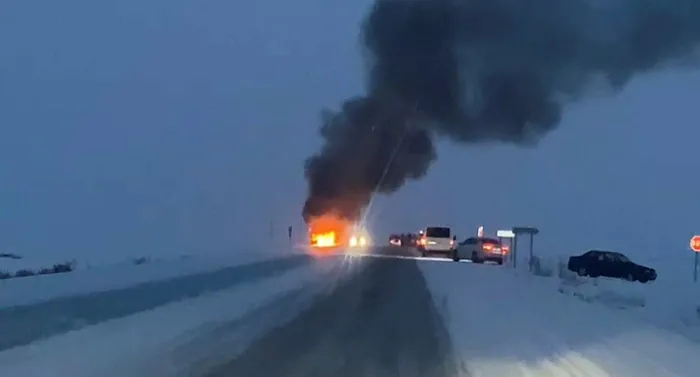 Öte yandan olay yerine gelen Arpaçay Belediyesi İtfaiye ekipleri yanan araca müdahale ederek söndürdü.