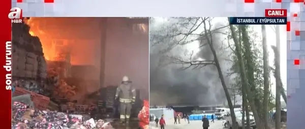 Eyüpsultan Kemerburgaz'da bulunan doğal kaynak suyu tesisinde yangın çıktı. Olay yerine çok sayıda itfaiye ekibi sevk edildi. A Haber ekiplerinden İslim Çobanoğlu olay yerine gitti ve son durumu aktardı.