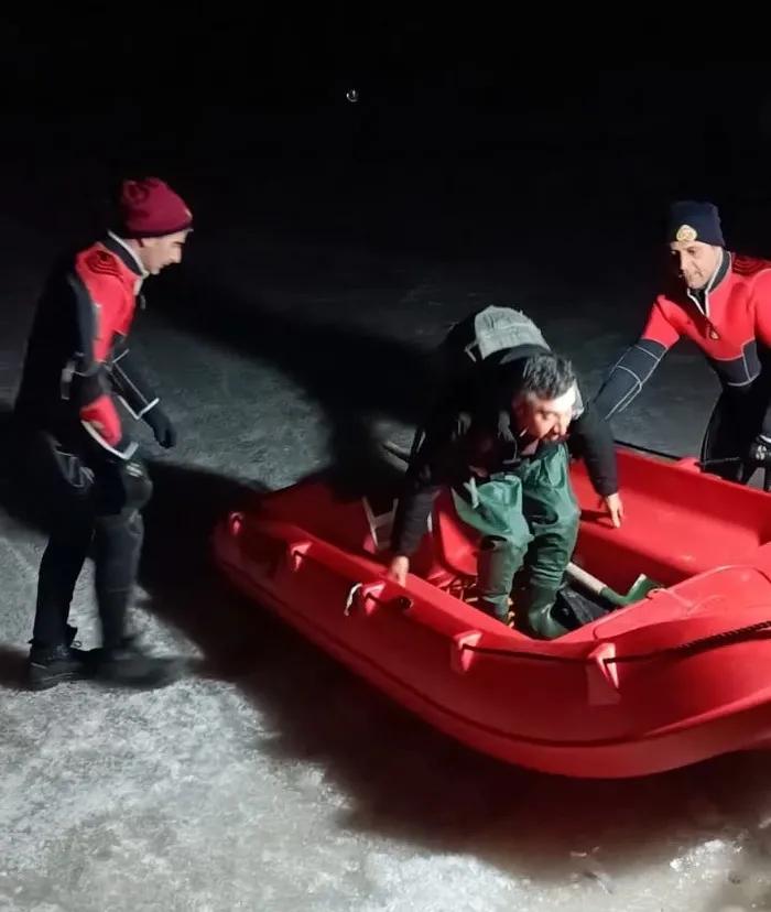 Adıyaman'da 3 kişi buzlar çözülünce barajın ortasında mahsur kaldılar