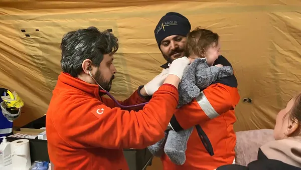 UMKE sağlık ekiplerinin yaptığı muayene ve inceleme sonucunda Asia bebeğin yüksek ateş şikayeti ve annesi Yana'nın üst solunum yolu enfeksiyonu ile soğuk algınlığı tedavi edildi.