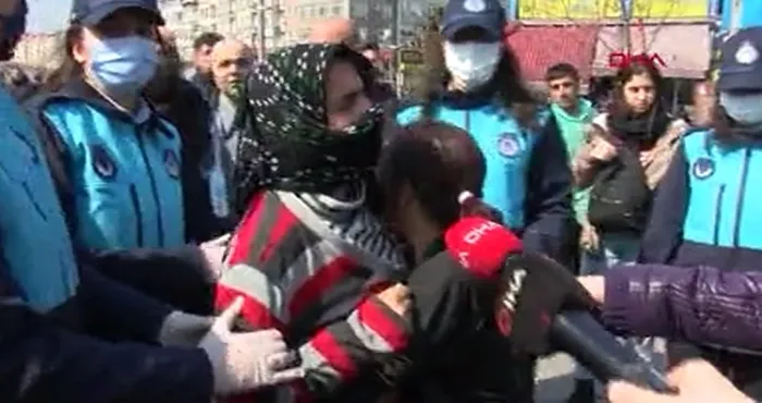 Zabıta ekipleri tarafından durdurulan kız, en sonunda kaçmayı başardı. Uzaktan kızlarını izlediği görülen anne ise ekiplerin yanına geldiğinde 'Biz buraya gezmeye geldik' diye bağırdı.