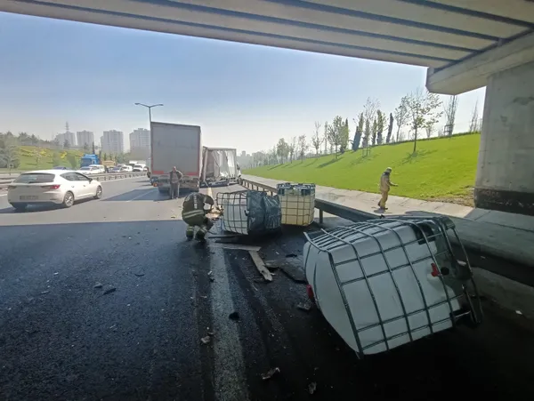 İstanbul'da kimyasal madde taşıyan kamyonet kaza yaptı: Variller yola saçıldı