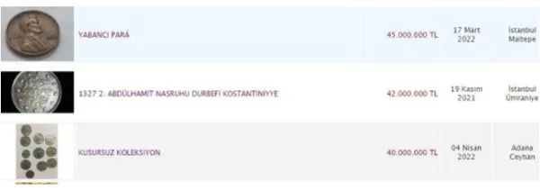 İnternet sitesinde 'para, madalya' başlığı altındaki 17 binden fazla ilan arasında 5'inci Mehmed dönemine ait delikli para en yüksek fiyattan satışa sunuldu. Osmanlı İmparatorluğu'nun 35'inci padişahı 5'inci Mehmed dönemine ait delikli 20 paraya sahibi, 50 milyon lira fiyat biçti. Osmanlı'nın 34'üncü ve son padişahı 2'nci Abdülhamid dönemine ait para da sahibi tarafından 42 milyon liradan satışa sunuldu.