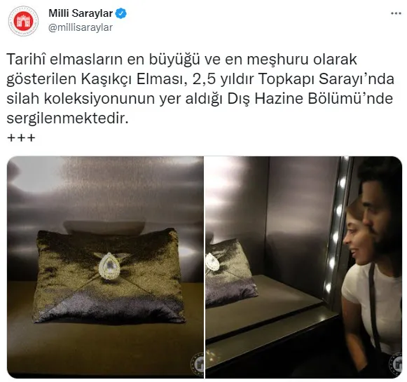 Milli Saraylar'ın sosyal medya hesabından Kaşıkçı Elması'nın kaybolduğu iddialarına yanıt verildi.