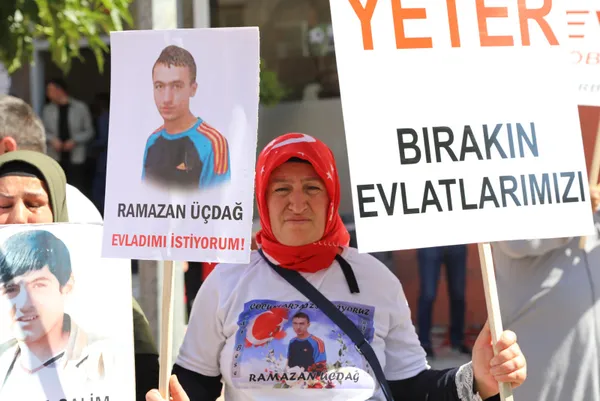Son dakika haberi... Terör örgütüne başkaldıran annelerin evlat nöbetinde bugün 1000. güne girildi. Eylemi başlatarak korku duvarını yıkan anne Hacire Akar yaptığı açıklamada, 'Kararlılığımı görünce oğlumu getirdiler. Anne yüreği karşısında kimse duramaz' ifadelerine yer verdi. Başkan Recep Tayyip Erdoğan evlat nöbetindeki annelere seslendi. Başkan Erdoğan, 'Terör örgütü meydanın boş olmadığını gördü.' ifadelerini kullandı.