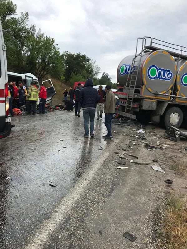 Son dakika haberi...Balıkesir-Kütahya yolunda bir minibüs ile tanker çarpıştı. Kazada ölü ve yaralıların olduğu öğrenildi. Olay yerine çok sayıda polis ve sağlık ekibi sevk edildi. İçişleri Bakanı Süleyman Soylu kazada 6 kişinin hayatını kaybettiğini, 15 kişinin yaralandığını duyurdu. Gelen son dakika bilgisine göre feci kazada hayatını kaybedenlerin sayısı 7'e yükseldi.