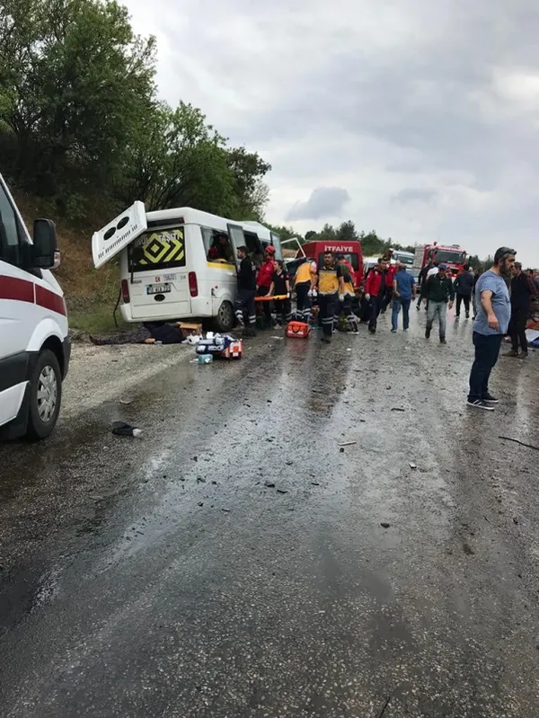 Balıkesir'in Dursunbey ilçesinde meydana gelen trafik kazasında 7 kişi yaşamını yitirdi, 11 kişi yaralandı.