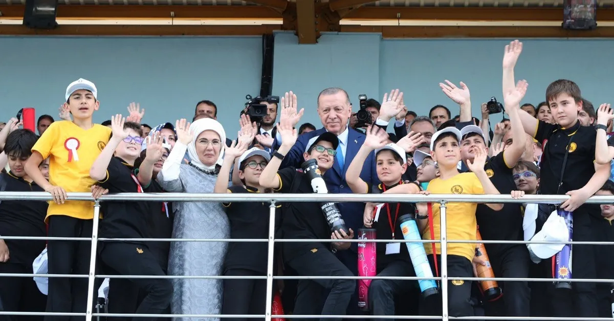 Emine Erdoğan, sosyal medya hesabından yaptığı paylaşımda, "Bugün çalan son ders ziliyle bir eğitim-öğretim yılı daha geride kaldı. Dünyanın en büyük Türk Müziği Çocuk Korosu'nun eşliğinde çocuklarımızın karne sevincini paylaştık. Eğitimcilerimize emekleri için teşekkür ediyor, öğrencilerimize iyi tatiller diliyorum." ifadelerini kullandı.