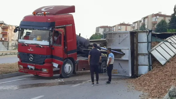 Mobilya İhtisas Organize sanayi bölgesinde faaliyet gösteren bir fabrikadan yüklediği talaşları İnegöl OSB'de bulunan orman ürünleri fabrikasına götürmek üzere yola çıkan Süleyman Yaz (40) yönetimindeki 35 ASM 285 plakalı talaş yüklü TIR, virajda sürücüsünün kontrolünden çıktı.