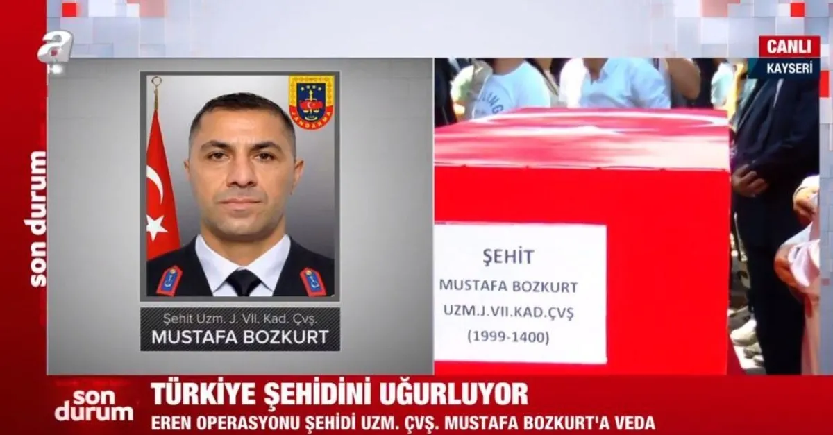 Van'ın Çatak ilçesi kırsalında, terör örgütü PKK mensuplarınca önceden yerleştirilen el yapımı patlayıcının infilak etmesi sonucu şehit olan Uzman Çavuş Mustafa Bozkurt, memleketi Kayseri'de son yolculuğuna uğurlanıyor.
