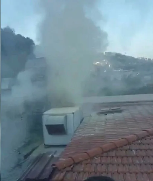 Çatıdan dumanların yükseldiğini gören mekanın çalışanları yangına müdahale etti.