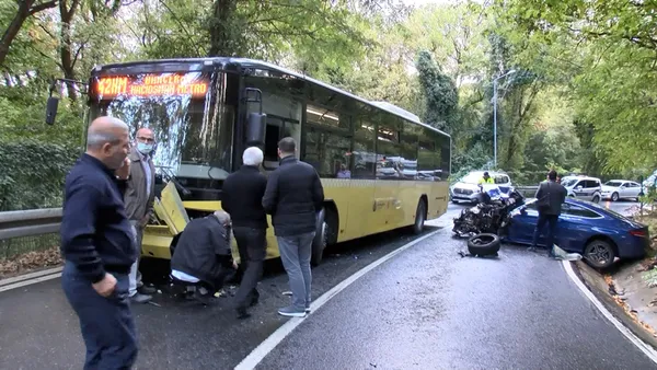 Sarıyer'de facianın eşiğinden dönüldü! İETT otobüsü ile otomobil feci şekilde çarpıştı