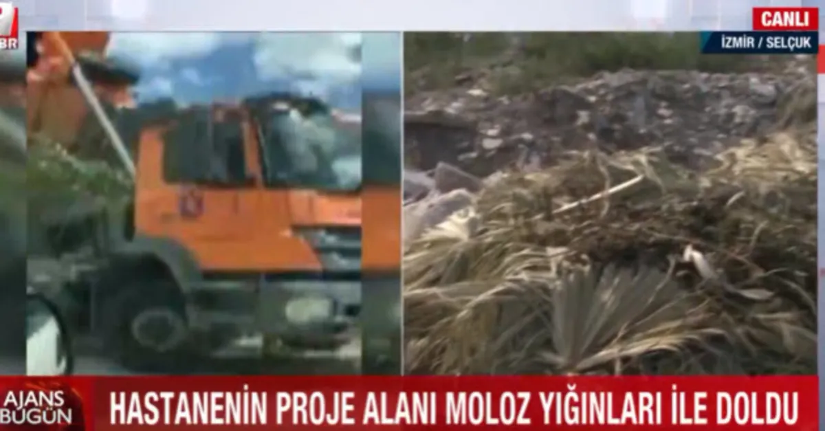 CHP'li İzmir Büyükşehir Belediyesi'nin bitmek bilmeyen skandallarına bu kez de hastane projesi alanını çöplüğe çevirmek girdi. A Haber canlı yayınında belediyeye ait kamyonların bölgeye moloz döktüğünü belirten AK Parti Selçuk İlçe Başkanı Hakan Bayraktar, 'Tarım arazisi alanına çevirip çöp döktüler. Aylardır moloz dökülüyor.' dedi.