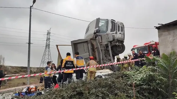 Son dakika | Başakşehir'de korkunç olay! Hafriyat kamyonu otomobilin üstüne devrildi