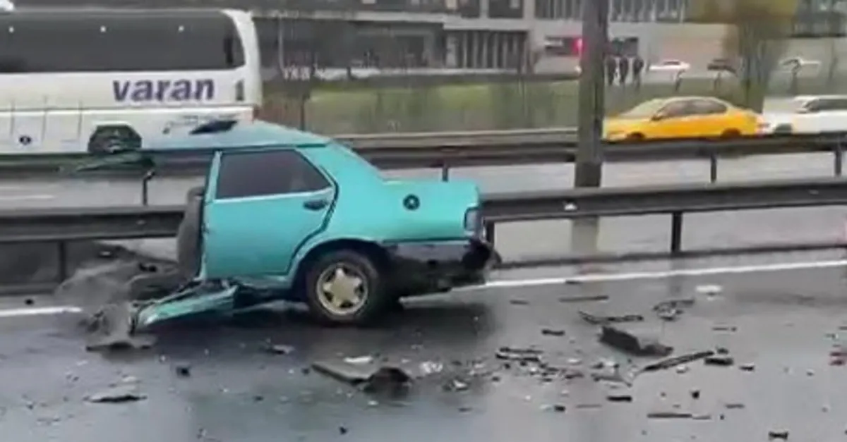 Eyüpsultan TEM Otoyolu'nda sapağı kaçdığı iddia edilen otomobil sürücüsü aniden direksiyonu kırınca, seyir halindeki başka bir otomobille çarpıştı. Kaza sonucu sapağı kaçıran otomobil ikiye bölünürken, 2 kişi ağır yaralandı.