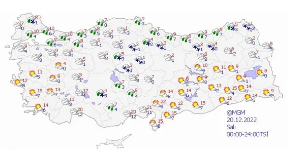 Meteoroloji Genel Müdürlüğü yeni hava tahmin raporunu paylaşırken hafta sonu plan yapan vatandaşları uyardı. Yağışların cumartesi gününe kadar süreceği ancak pazar günü tekrar başlayacağı belirtildi. Yurdun büyük kısmında sağanak ve kar yağışının etkili olacağı haritada yer aldı. Meteoroloji uzmanları ise dünyanın birçok noktasında kış mevsiminin etkili olacağı ve Türkiye'yi de çetin bir kışın beklediğini belirtti.