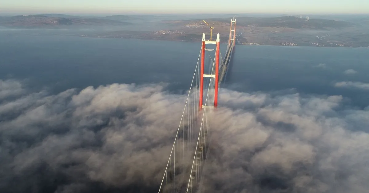 Gece yarısı başlayan sis, sabahın ilk ışıklarıyla etkisini arttırdı. Sis altında kalan 1915 Çanakkale Köprüsü'nün dron ile çekilen görüntüleri beğeni topladı.