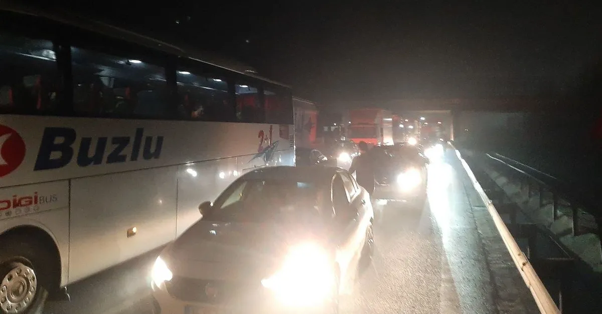 Yaklaşık 45 dakika boyunca süren çalışma nedeniyle kilometrelerce araç kuyruğu oluştu.