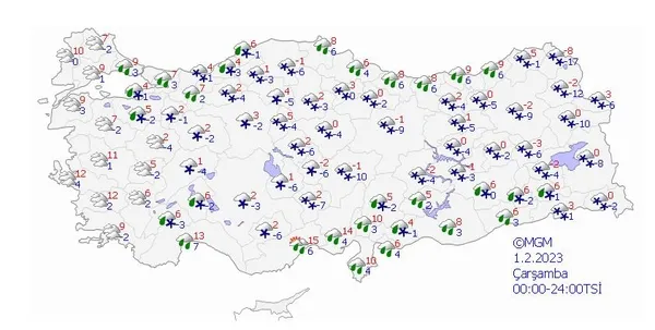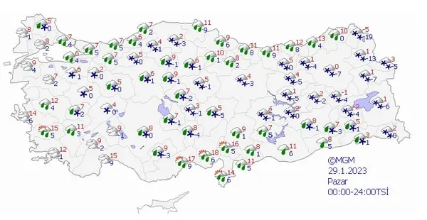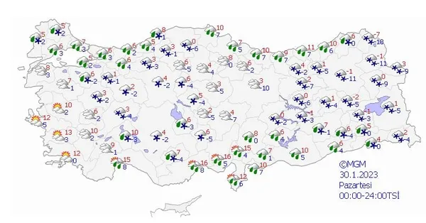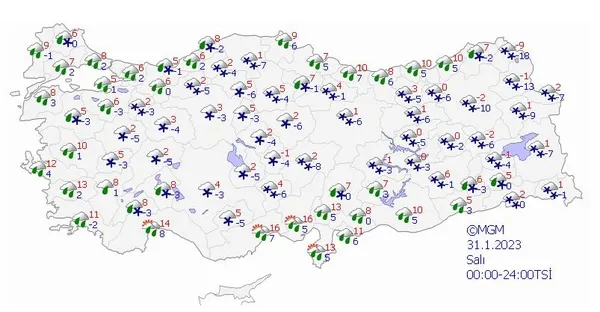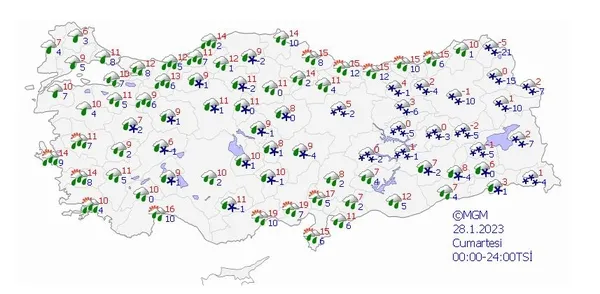 Meteoroloji Genel Müdürlüğü tarafından yapılan son değerlendirmelere göre; Ülkemiz genelinin parçalı ve çok bulutlu, Marmara, Ege, Akdeniz, İç Anadolu, Batı Karadeniz ile Doğu ve Gnüneydoğu Anadolu'nun batısının yağışlı geçeceği tahmin ediliyor. Yağışların; Güney ve Kıyı Ege'de kuvvetli, Balıkesir'in batı kıyıları, İzmir, Aydın'ın batısı ve Muğla ile Antalya'nın merkez ve batı ilçelerinde yer yer çok kuvvetli ve şiddetli olması bekleniyor.İç ve doğu kesimlerde sabah saatlernde yer yer pus ve sis bekleniyor.