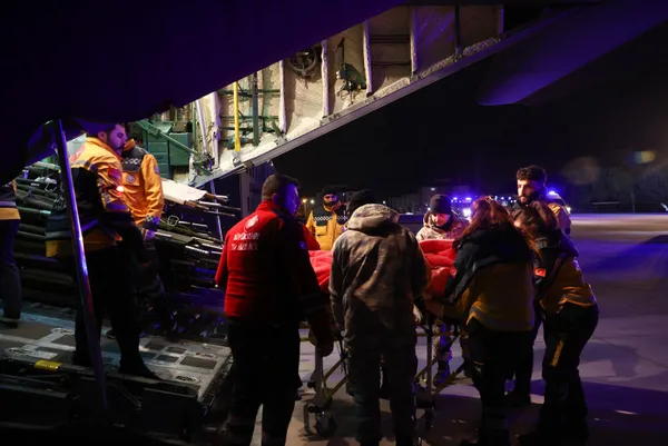 Kahramanmaraş merkezli 7.7 ve 7.6 büyüklüğündeki depremlerin ardından arama-kurtarma çalışmaları sonucu göçük altından çıkarılan yaralıların bazıları askeri kargo uçaklarıyla büyükşehirlere nakledilmeye devam ediyor.
