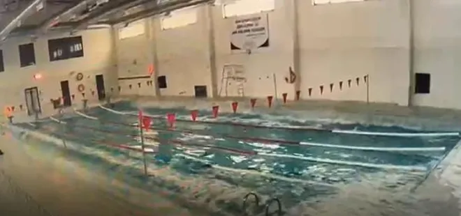 Gaziantep Büyükşehir Belediyesi'ne ait Ertuğrul Gazi Yüzme Havuzu'nda deprem anında yaşananlar güvenlik kamerasına yansıdı.