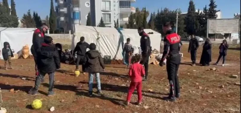 Adıyaman’da yürekleri ısıtan görüntüler! Yunus polisler, depremzede çocuklarla top oynadı