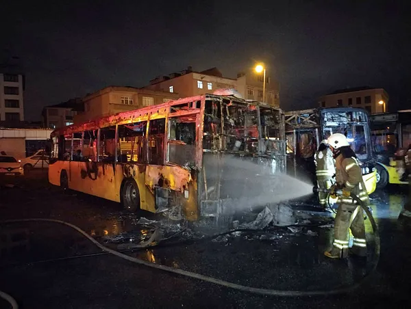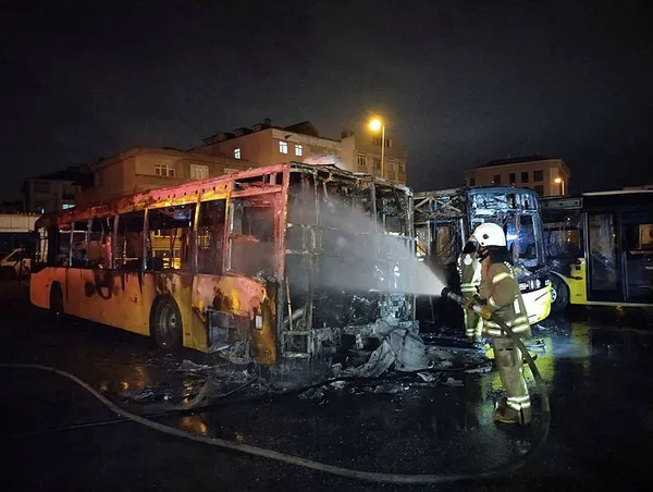 Tuzla'da park halindeki 3 İETT otobüsü yandı