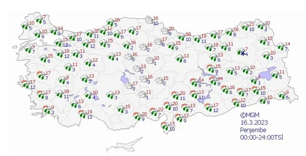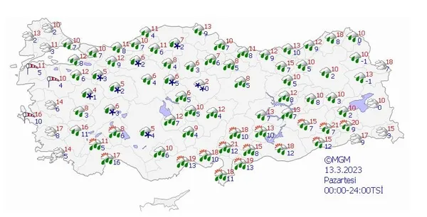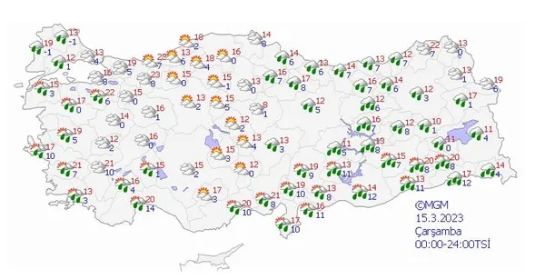 KUVVETLİ YAĞIŞ UYARISI: Yağışların, Batı Akdeniz, İç Anadolu'nun kuzeybatısı, Orta Karadeniz ile Konya, Aksaray, Nevşehir ve Sinop çevrelerinde kuvvetli, Antalya'nın kuzey ve doğusunda çok kuvvetli olması beklendiğinden yaşanabilecek ani sel, su baskını, yıldırım, yerel dolu yağışı, ulaşımda aksamalar ve fırtınaya karşı dikkatli ve tedbirli olunmalıdır.