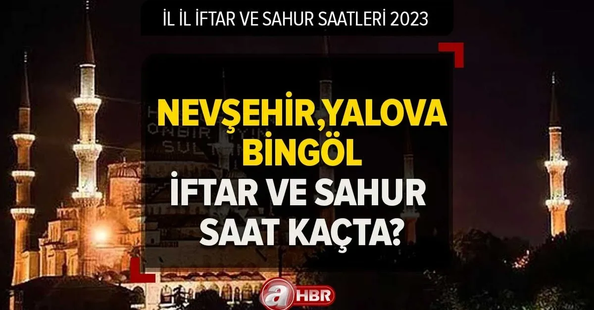 On bir ayın sultanı Ramazan ayı için geri sayım başladı. 2023 yılında ilk oruç perşembe günü başlayacak. Ramazan ayı ise 21 Nisan Cuma günü sona erecek. 2023 Ramazan ayı imsakiyesinin yayımlanmasının ardından iftar ve sahur saatleri merak konusu edilmeye başladı. Peki, Nevşehir, Yalova, Bingöl'de iftar ve sahur saat kaçta?