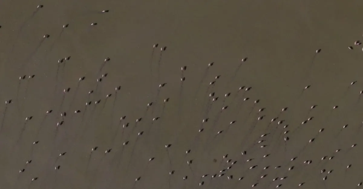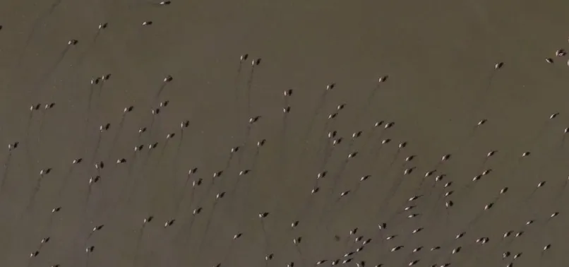Doğa Koruma ve Milli Parklar Genel Müdürlüğü tarafından sosyal medya hesabında paylaşılan videoda flamingoların Yarışlı Gölü'ne geldiği görüntülendi.