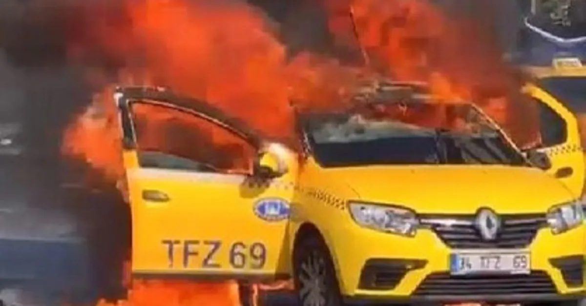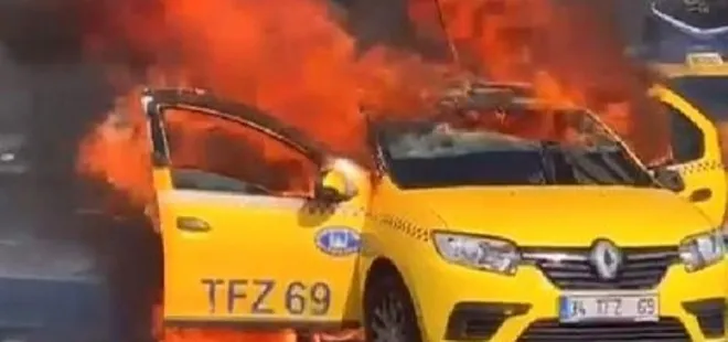 İstanbul’da yolcuların indiği taksi alevlere teslim oldu: Bir anda yükseldi