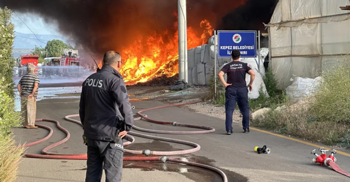 Korkutan yangın Antalya'nın Kepez ilçesinde meydana geldi. İhbar üzerine bölgeye çok sayıda itfaiye ekibi sevk edildi. Ekiplerin 3 saatlik müdahalesiyle söndürülen yangında, geri dönüşüm deposu ve alevlerin sıçradığı 2 serada hasar oluştu.